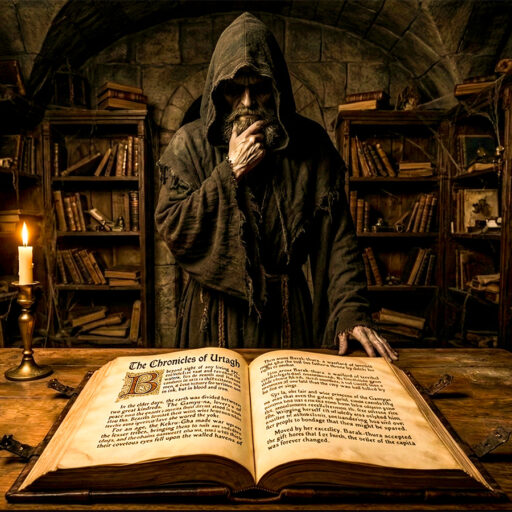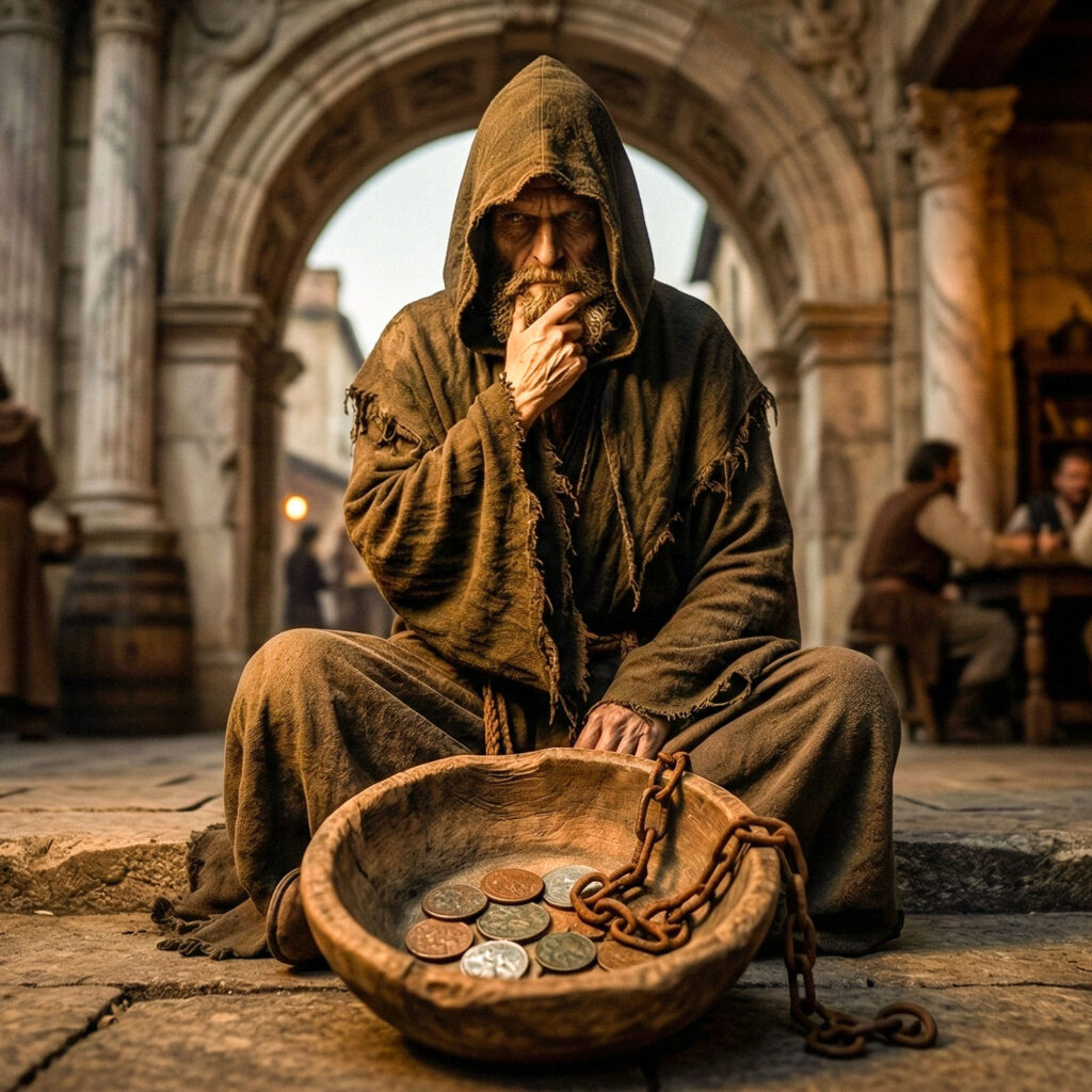 WEIGH THE TRUTHIn the shadows of Urtagh, a broken body does not always mean a broken mind. Look at the old man sitting cross-legged beneath the stone archways. The guards step over his ragged robes, thinking him just another wretch who lost his fight against the iron. But look closer at his wooden bowl. He does not hold it out for scraps. He keeps a heavy, rusted chain inside it – a silent, brazen mockery of the collars we all wear. Beneath that heavy hood and behind those piercing eyes hides a memory of the Old World. He knows the paths the Scribes erased. He knows why the sky feels like a cage. Approach him. Sit on the cold stone. Listen closely to his whispers, for the beggar’s tales are the only maps that will show you the real Urtagh.