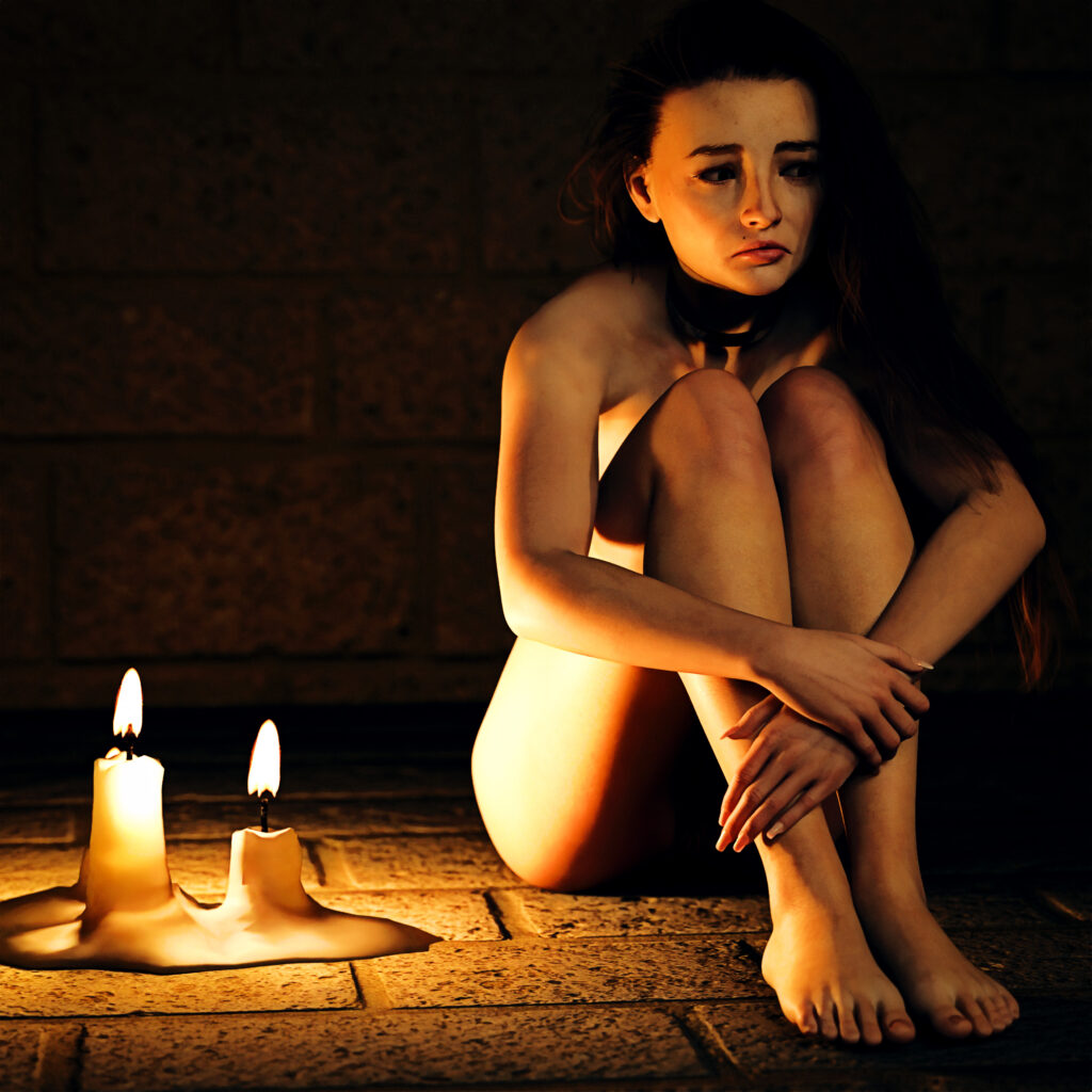 The candles offer a mockery of warmth, illuminating the cold reality of the stone floor and the weight of the collar that has become her new skin. She waits in the silence, listening to the distant echoes of the city above—a city that has already forgotten her name. In Urtagh, beauty is not a shield; it is merely a reason for the walls to be built higher and the chains to be forged thicker.